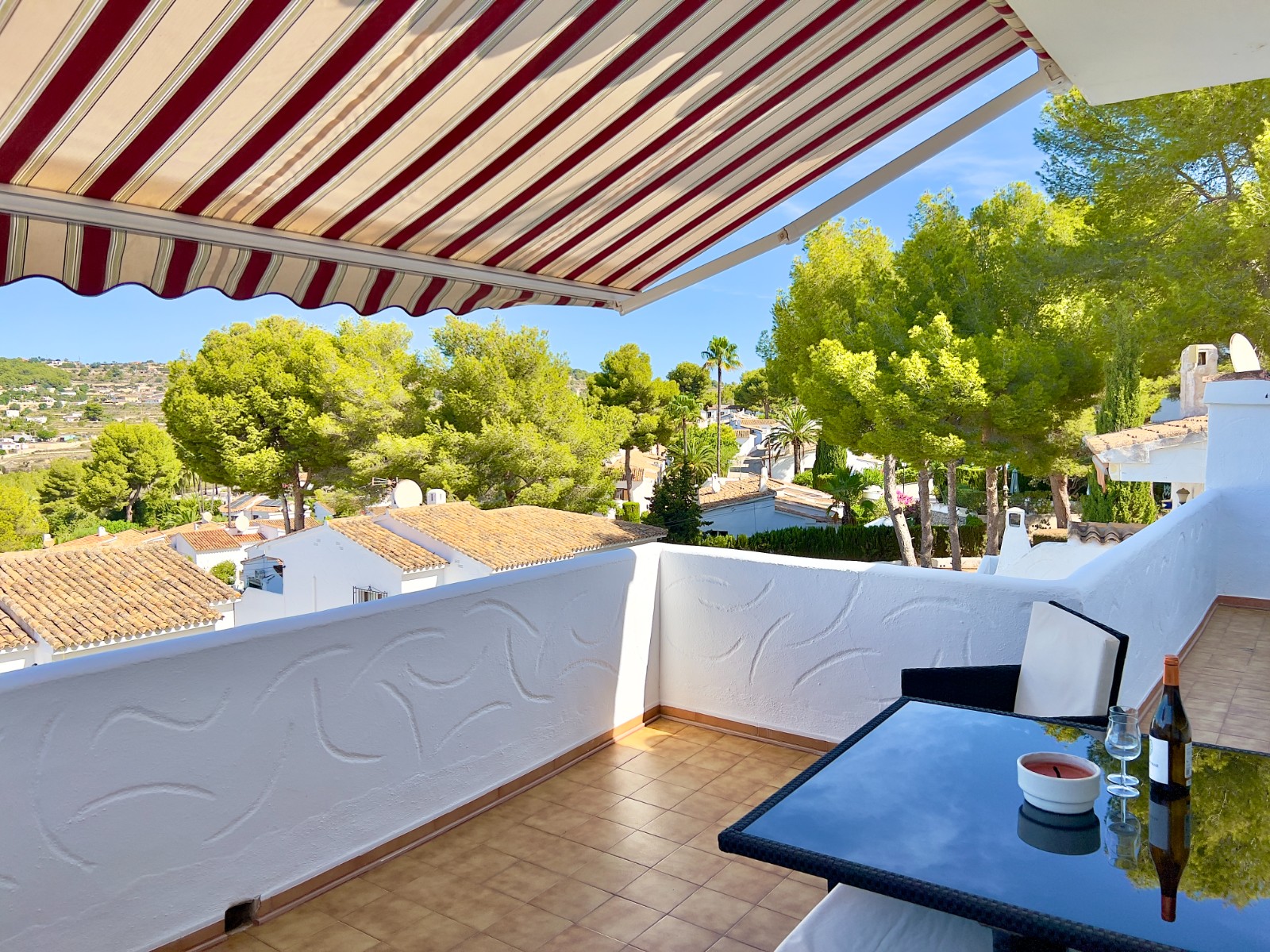 Villotel is a peaceful urbanisation connected to mains drainage and maintained to a high standard. Residents benefit from excellent communal facilities, including a large swimming pool with summer bar, tennis courts, and a mini-golf course all just a few minutesâ€â¢ walk away from your front door. A supermarket is within walking distance or just a two-minute drive, while the centre of Moraira with its shops, restaurants, bars, and Blue Flag beaches is only a short drive away.