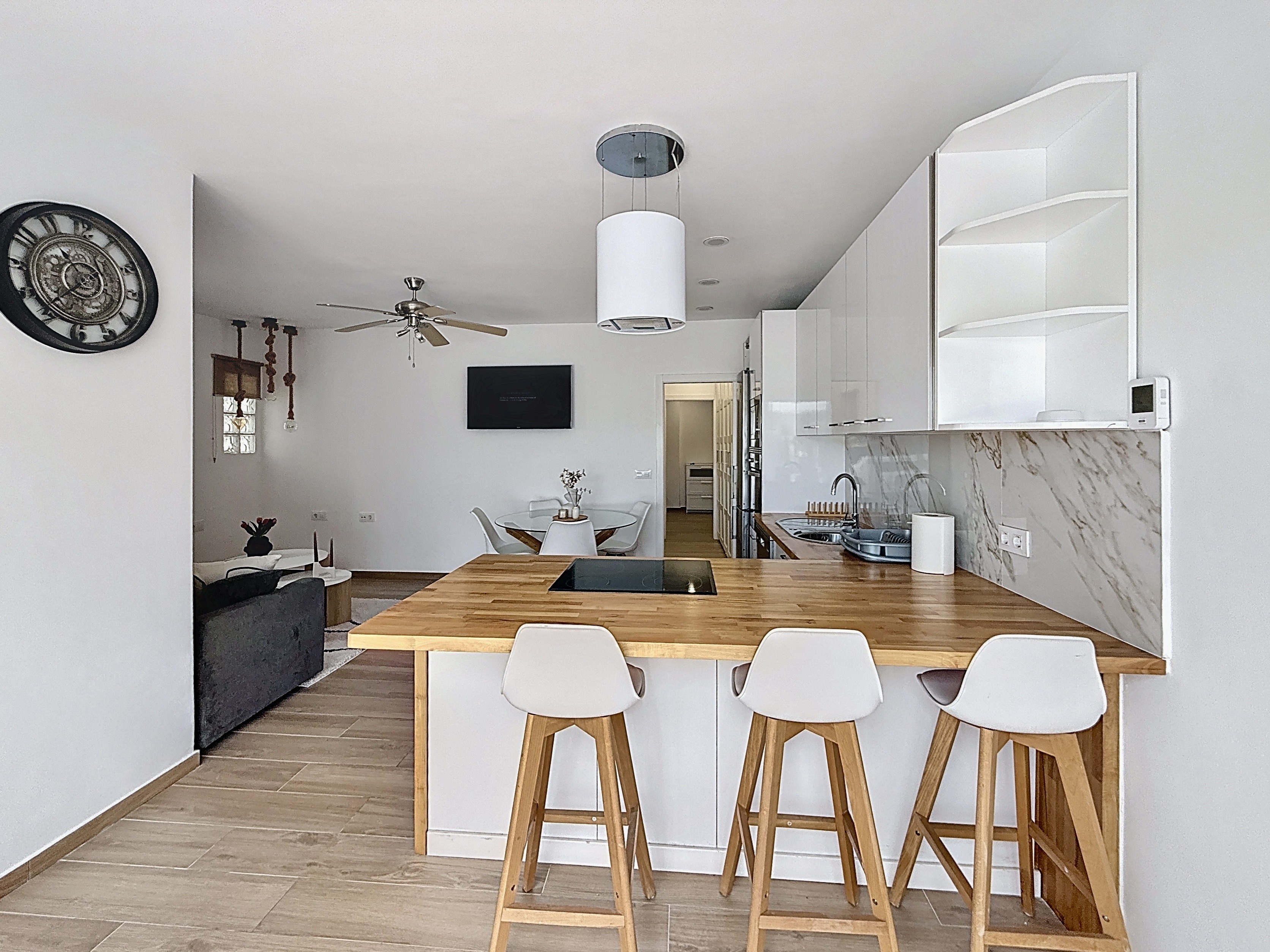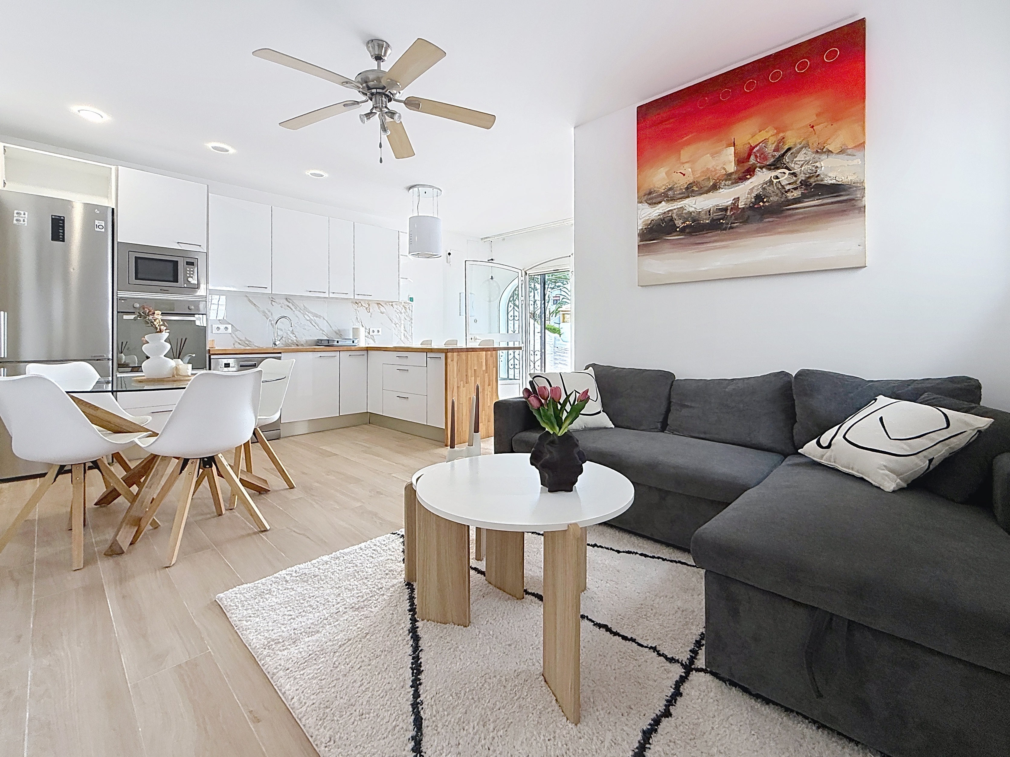 The property has been fully renovated in 2026 and is presented in turn-key condition, ready to walk into, enjoy immediately, or place straight on the rental market. The apartment features two well-proportioned bedrooms, a modern fully equipped shower room, and bright, functional living spaces designed for easy Mediterranean living.