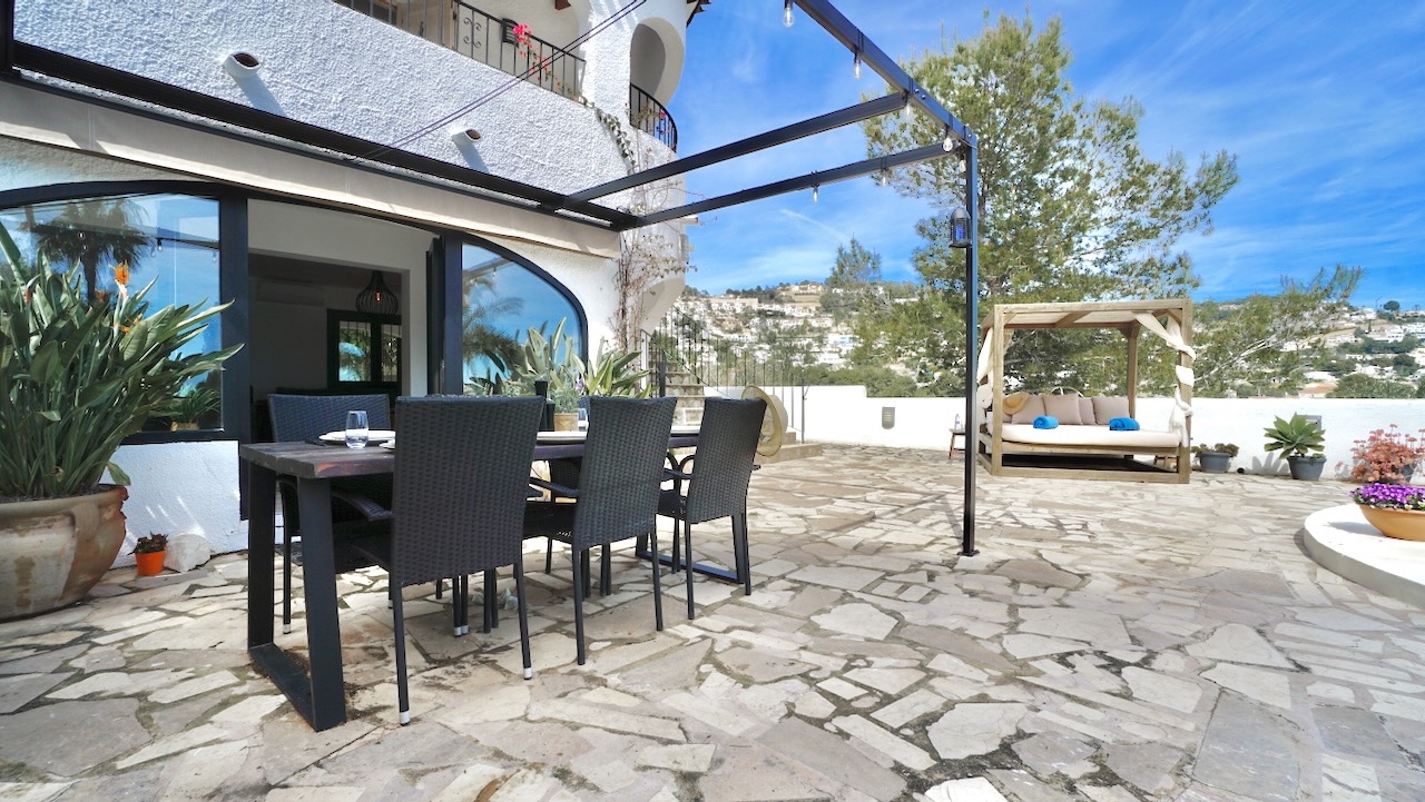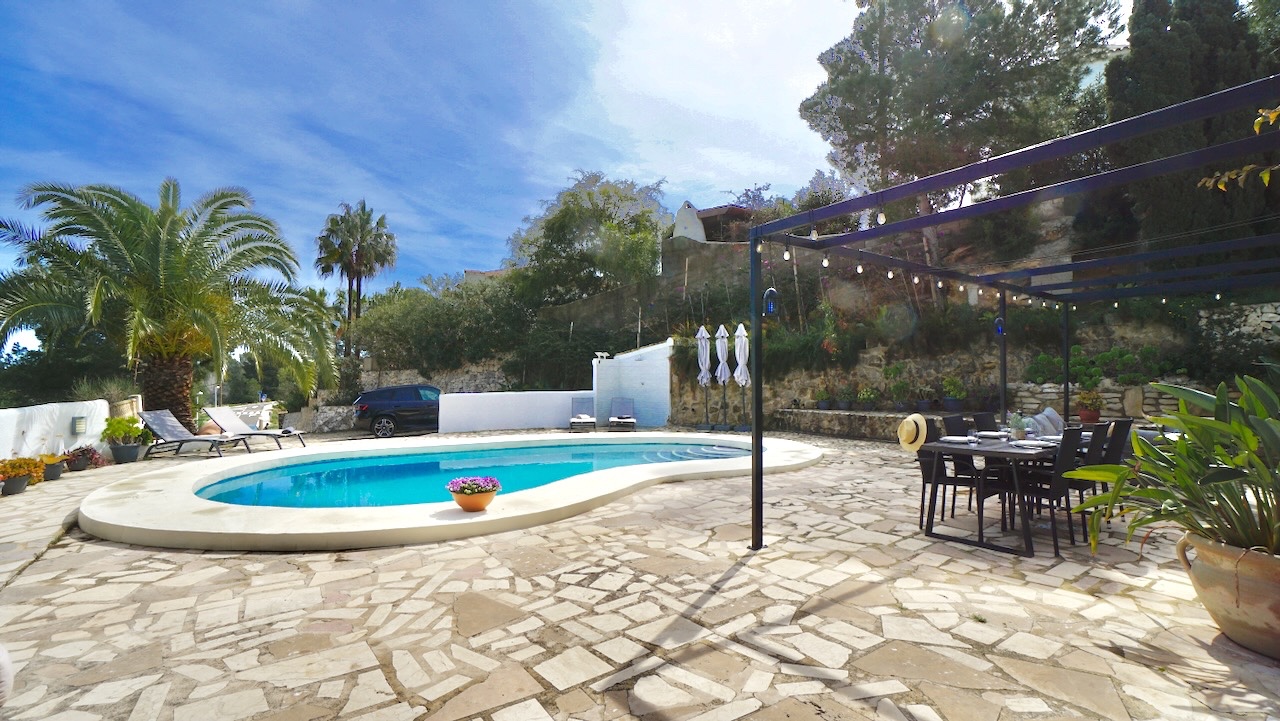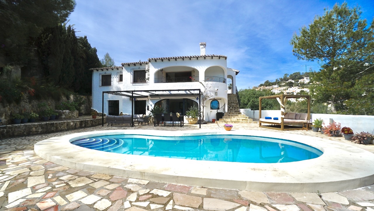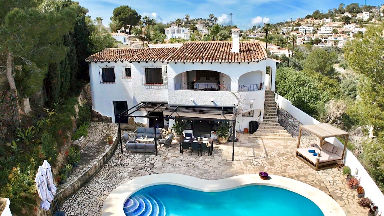 This charming traditional-style villa in Moraira was completely refurbished in 2023 and combines Mediterranean character with modern comfort. Set on a private plot of 1000 m², the property enjoys open views across the valley and a peaceful setting while still being conveniently close to the coast, beaches and the centre of Moraira.