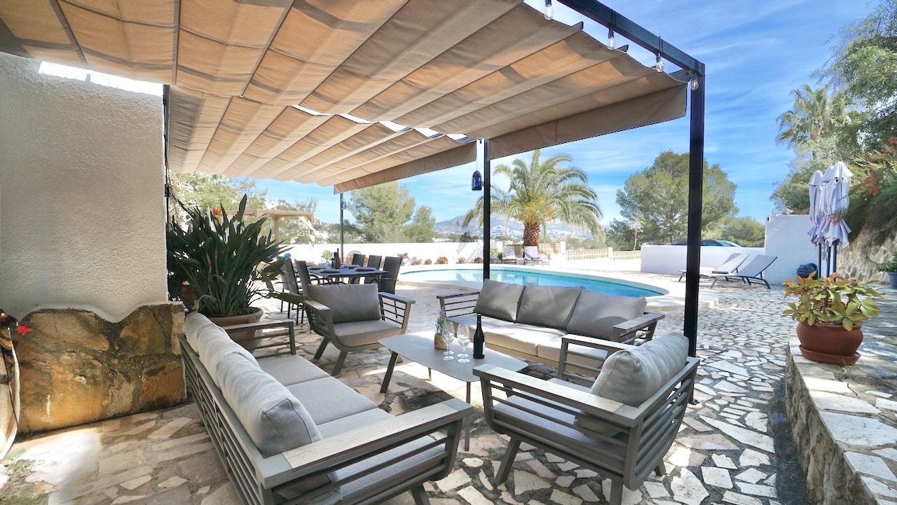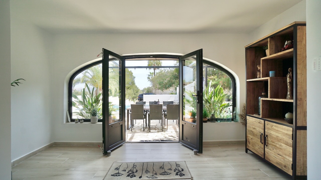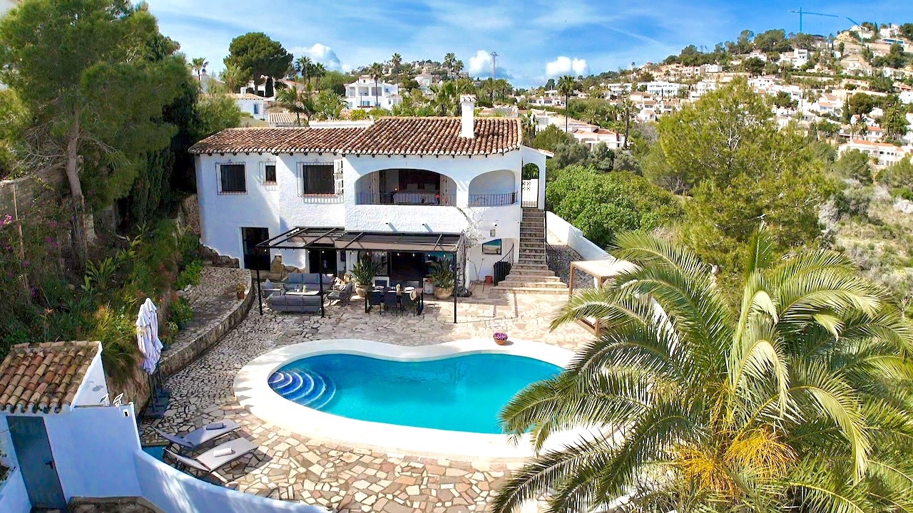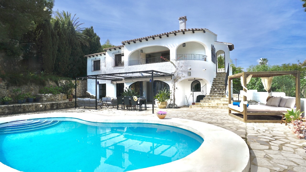 This charming traditional-style villa in Moraira was completely refurbished in 2023 and combines Mediterranean character with modern comfort. Set on a private plot of 1000 m², the property enjoys open views across the valley and a peaceful setting while still being conveniently close to the coast, beaches and the centre of Moraira.