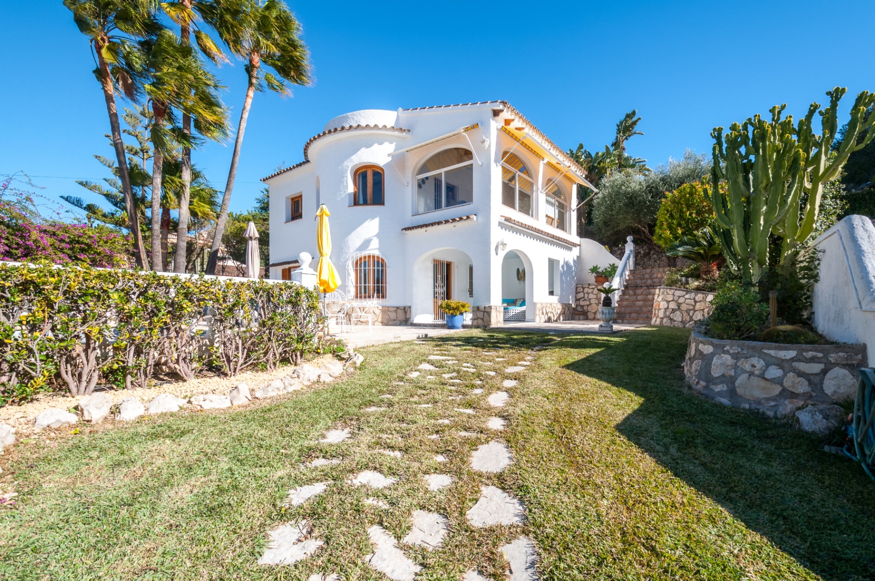 Nestled in the sought-after seaside resort of Moraira, this beautifully maintained villa offers the perfect blend of Mediterranean charm and modern comfort. Set on a generous plot, the property boasts sea views, lush landscaped gardens, and a peaceful, private ambiance.The villa comprises 3 spacious bedrooms and 2