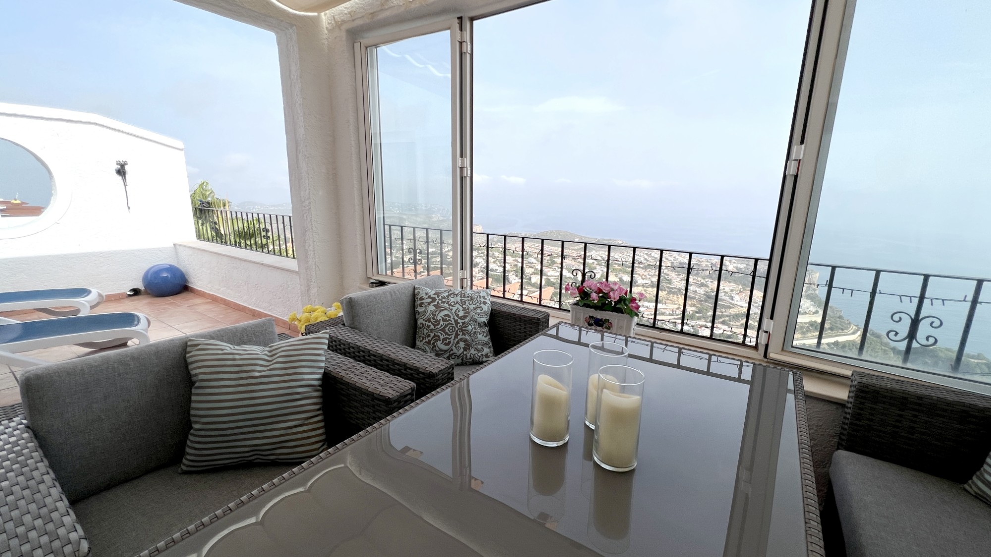 Lovingly Modernised Apartment with Panoramic Sea and Valley Views in Pueblo Panorama, Benitachell.