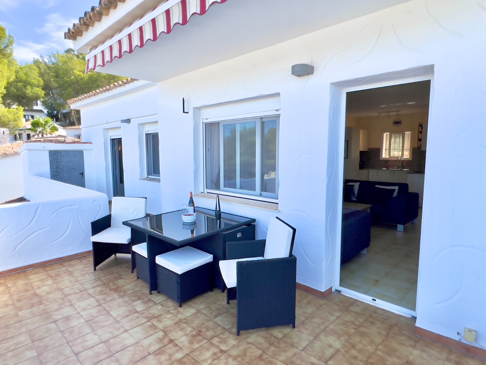 Villotel is a peaceful urbanisation connected to mains drainage and maintained to a high standard. Residents benefit from excellent communal facilities, including a large swimming pool with summer bar, tennis courts, and a mini-golf course all just a few minutesâ€â¢ walk away from your front door. A supermarket is within walking distance or just a two-minute drive, while the centre of Moraira with its shops, restaurants, bars, and Blue Flag beaches is only a short drive away.