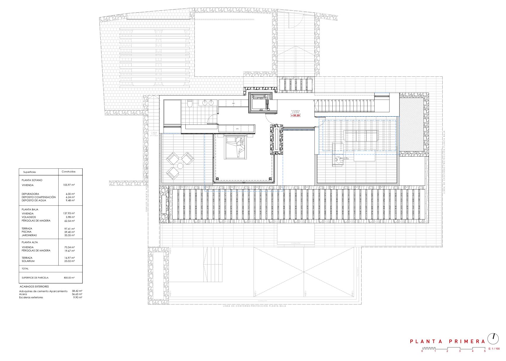 This modern villa with panoramic sea views is being built just 500 metres from La Fustera beach. An international supermarket, Playa La Fustera, the Eco-path and various restaurants are within walking distance. In less than 10 minutes by car, you can reach the centre of Calpe. A contemporary villa that combines natural materials, refined design and comfort in a central location.