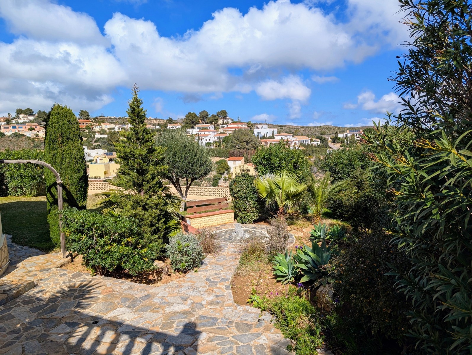 This beautifully maintained villa offers the perfect blend of Mediterranean charm and versatile living. Nestled in the peaceful Girasoles zone of Cumbre del Sol, the property sits on the edge of a lush green zone, providing a serene backdrop and from the garden there are stunning views that stretch across the landscape to the sea.