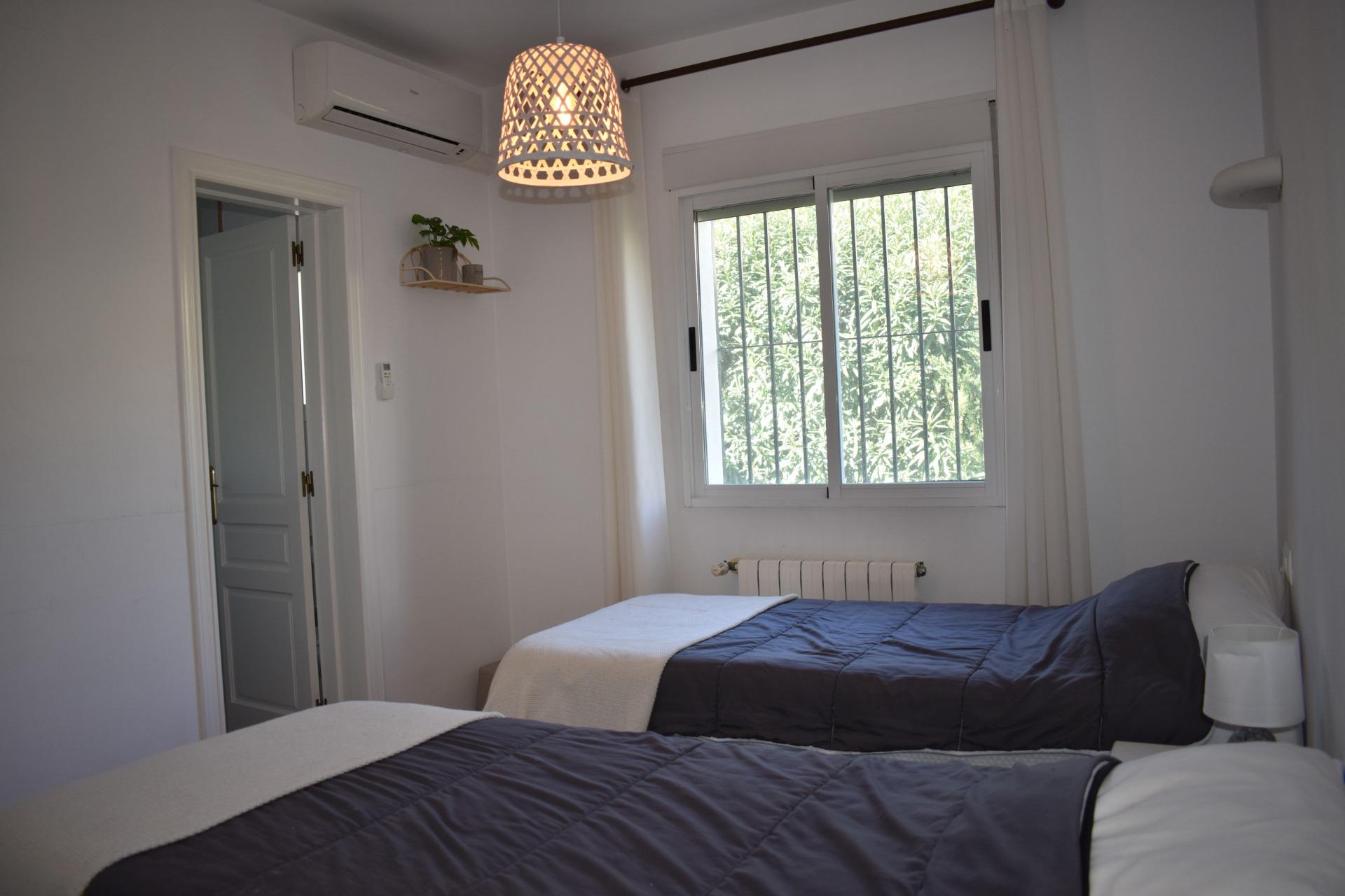 Mediterranean-style villa for sale in Moraira, close to town and amenities~~This beautiful, well-maintained villa is for sale in Moraira. It's located within easy walking distance of the town, shopping area, and the sea.~~Built in 2005 with high-quality materials, the villa is connected to the main sewer system. It features central heating, split air conditioning units (hot and cold), and a fireplace. The modern bathrooms, with easy access to the shower, have been recently updated.~~The main living area is at street level and comprises three bedrooms, two bathrooms, a living room, a dining room, and a separate, fully equipped kitchen.~Outside, there is a swimming pool, a garden with a carob tree, surrounding terraces, a covered porch, and a covered area that serves as an outdoor dining space.~~The property has side access to the garage via a remote-controlled sliding door. On this level, there is an area prepared with all the necessary pre-installations and connections for water, electricity, and drainage, as well as exterior windows, etc., to create a separate apartment of approximately 60 square meters. The property is fully fenced.~~This house is ideal for those seeking a sunny, peaceful home with good access, friendly neighbors, and level ground, located a short walk from Moraira. Please do not hesitate to contact us if you would like to visit.